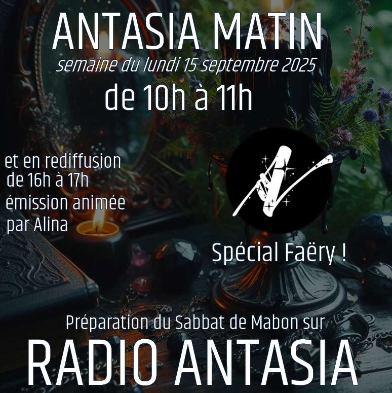 PROCHAINE ÉMISSION DE PLEINE LUNE : jeudi 4 décembre 2025 entre 21h et 23h 😀 INFORMATIONS : Antasia Matin, et la préparation du Sabbat de Yule en Faëry 😍 tous les jours du lundi 15 décembre au vendredi 19 décembre 2025 entre 10h et 12h et de 16h à 18h PROCHAIN SABBAT : Yule, Solstice d'hiver 😍 le dimanche 21 décembre 2025